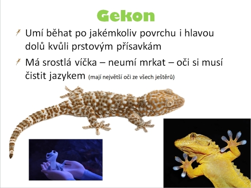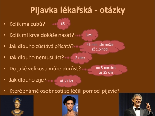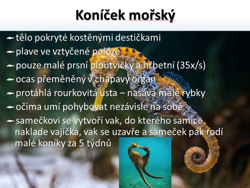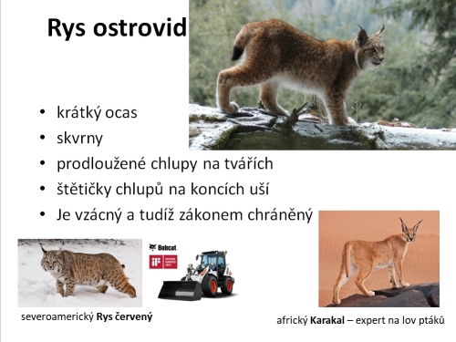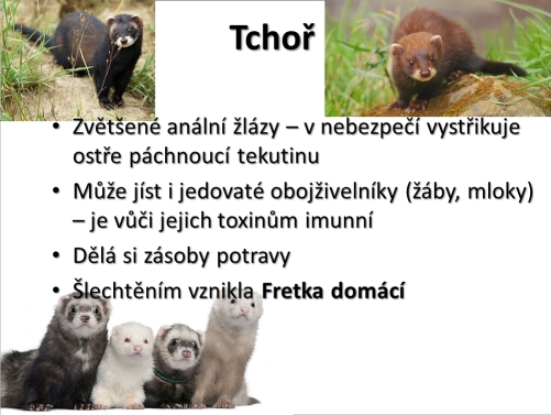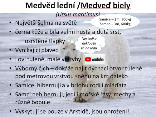 Otevřené prezentace i s animacemi. Ve většině prezentací je nejprve rozdělení, společné znaky a nejznámější nebo nejzajímavější zástupci i se stručnou charakteristikou. Úroveň je pro žáky základní školy a příslušných ročníků 8letých gymnázií, proto tam nepoužívám příliš mnoho odborných výrazů. V některých prezentacích jsou i doplňující otázky u daného slidu (snímku). Díky posloupným animacím jsou obrázky často naskládány jeden přes druhý. Pro spuštění aktuálního snímku v prezentaci i s animacemi zmáčkněte Shift+F5.