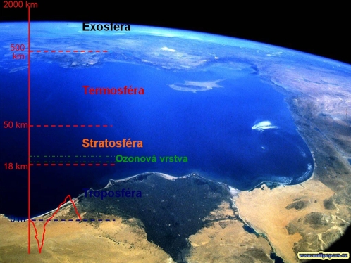 Atmosféra - jednotlivé vrstvy (kvůli zjednodušení nerozlišuji Mezosféru) + chemické složení vzduchu v troposféře