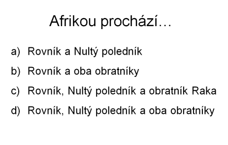 Afrika - otázky z přírodních poměrů - 6 otázek (i s možnostmi) na aktivizaci žáků. Otázky jsou koncipovány pro hledání v atlasu.