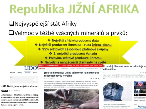 Jižní Afrika (region) - stručná charakteristika na základě jednotlivých států regionu